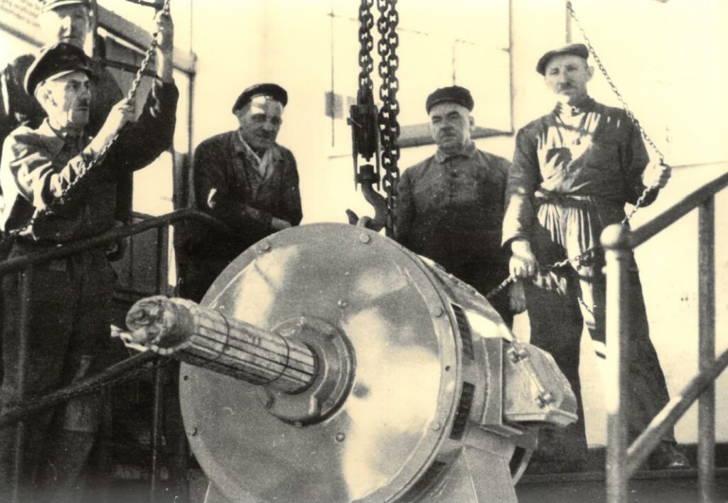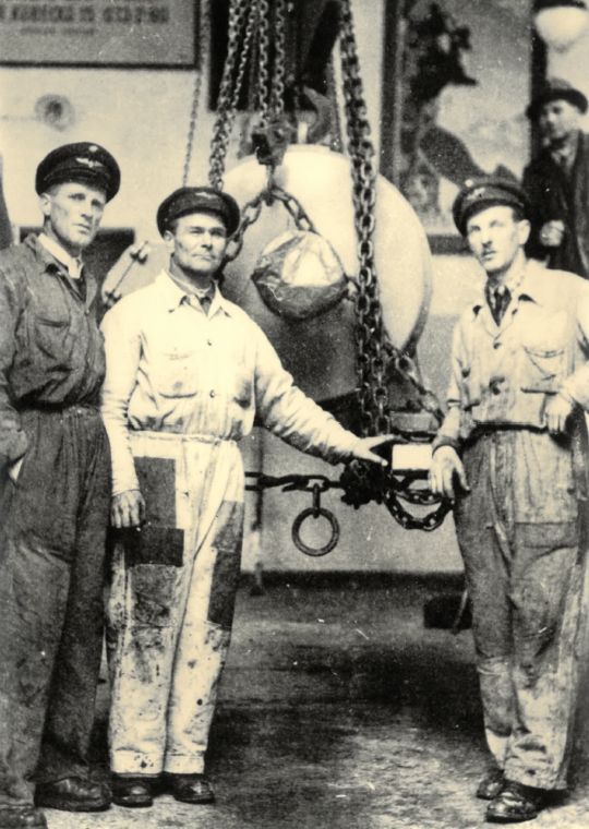 Baubesprechung mit DI Alois Zuegg, Ing. Rosenbaum v. Bleichert & Co.,Bauleiter Dip.Ing Ewald Bing, Hofrat Dr. F. Benesch